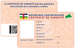 Ce service permet aux particuliers au République Centrafricaine d'obtenir des nouvelles cartes de Certificat de Capacité. Les Candidats qui ont leur permis de conduire peuvent demander un nouveau Certificat de Capacité en remplissant le formulaire de demande spécifié en l'accompagnant avec des pièces justificatives.